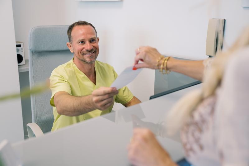 Um Ihre erste Behandlung so effektiv wie möglich zu gestalten, bitten wir Sie, vorab unseren Anamnesefragebogen auszufüllen. In diesem Fragebogen können Sie uns wichtige Informationen über Ihre Zahngesundheit, Ihre Krankengeschichte und eventuelle Medikamente, die Sie einnehmen, mitteilen: